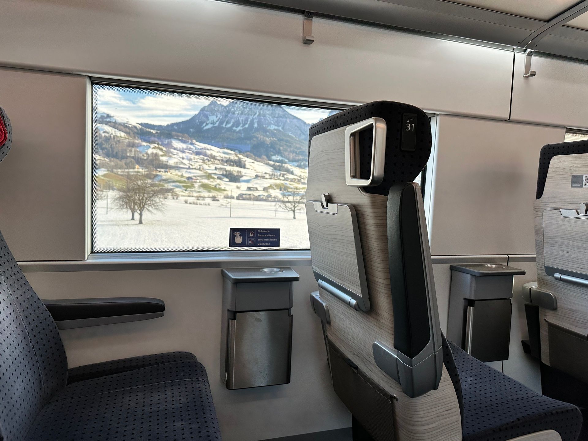 European trains are relaxed and comfortable. Move around easily, keep your bangs with you, and enjoy your snacks at your seat.